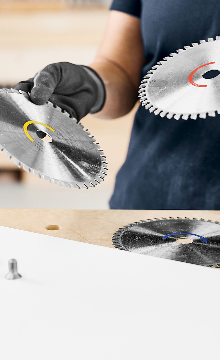 - Pentru tăierile de secţionare, de exemplu, pe muchii invizibile sau în materiale grosiere, de exemplu, în panourile din OSB, în cazul cărora rapiditatea este mai importantă decât muchia de tăiere fără desprinderi de aşchii, este suficientă o pânză cu un număr mai mic de dinţi.